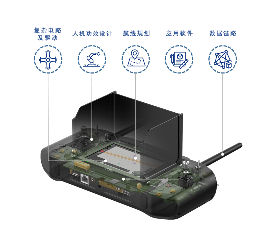 高清智能地面站可搭配多款無人機,集成藍牙、LTE、Wi-Fi、GPS、圖像傳輸等功能模塊,輕巧便攜,具有響應快速、超強抗干擾、穩定輸出高清圖像,可外接多種硬件接口,可靈活應用于多種工業應用場景等功能。